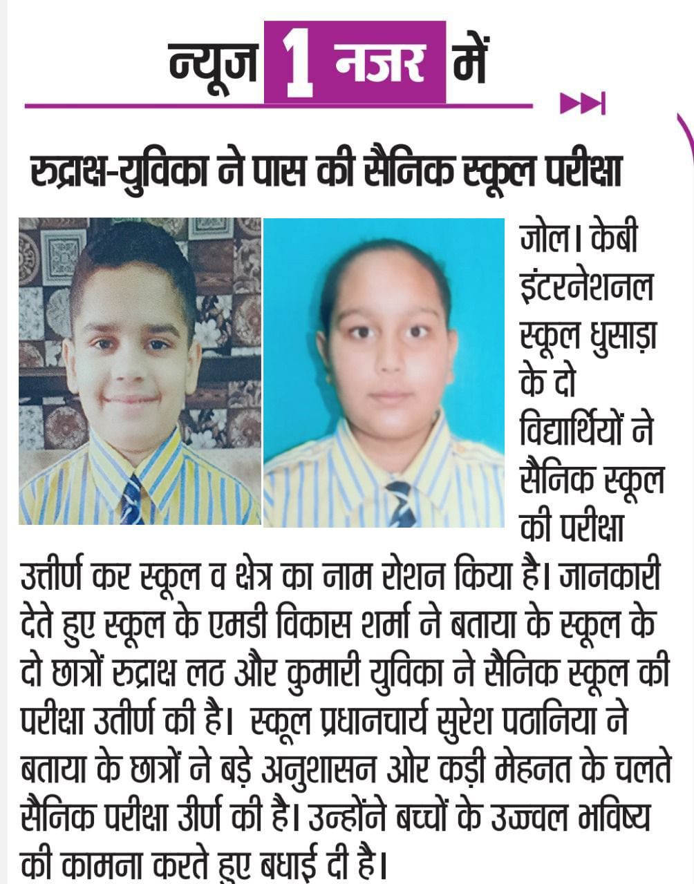 Congratulations to Ritika and Knowledge Valley School for this great accomplishment.
